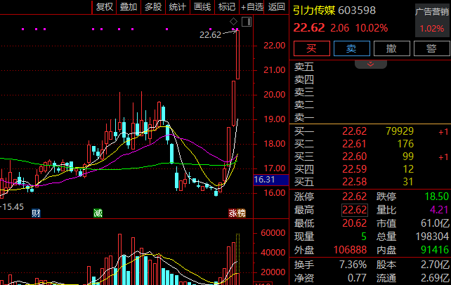 AI应用方向在开盘初期走高,引力传媒、东方明珠涨停,浙文互联、蓝色光标、迅游科技、易点天下等个股涨幅居前。
