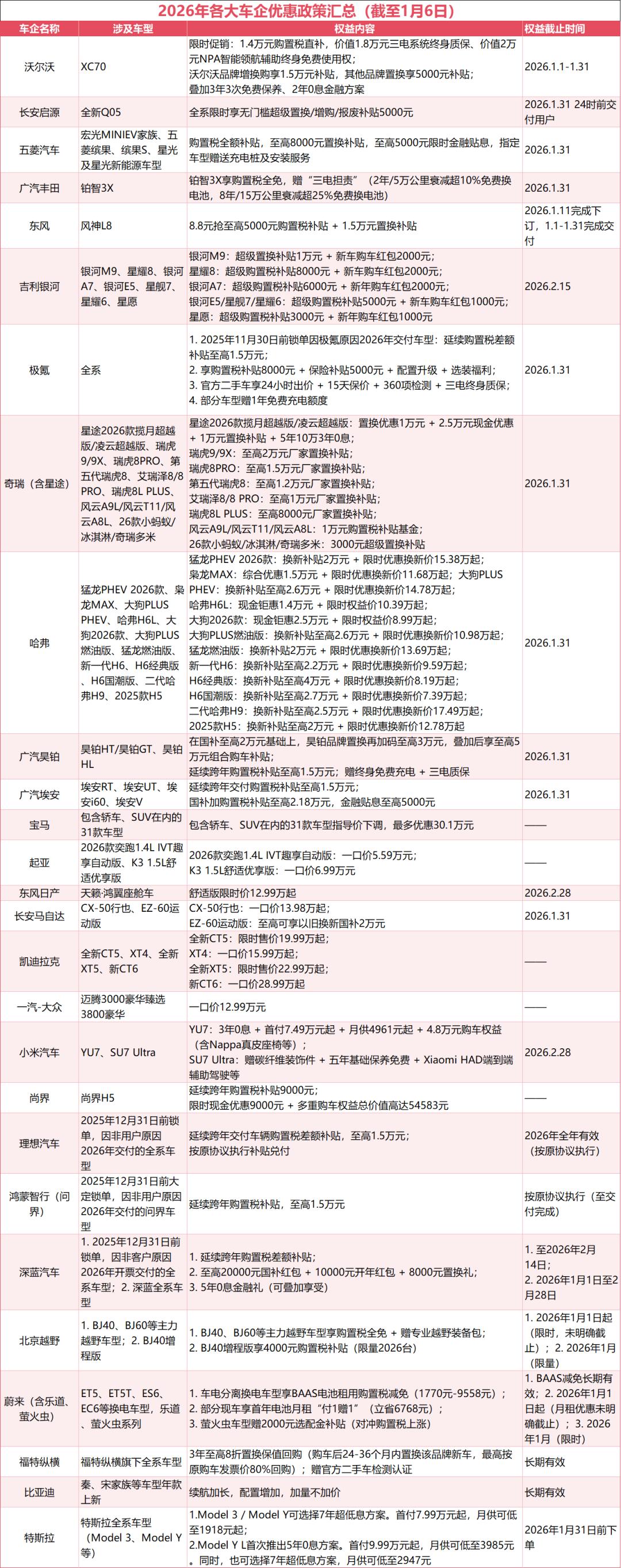 翻开2026年初的车市政策表,从豪华品牌到自主品牌,从新能源车型到燃油车,几乎所有主流品牌都加入了“权益竞争”,政策力度之大、覆盖范围之广前所未有。这些政策看似多样,但核心都是围绕“对冲国补退坡+购置税优惠调整”,试图用真金白银的补贴打动消费者。