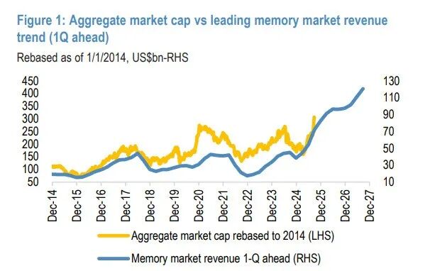 华尔街对此已形成高度共识。野村证券指出,这一轮“存储超级周期”至少将延续至2027年;摩根大通预测,头部存储厂商总市值有望在2027年接近1.5万亿美元,较当前仍有超50%的上涨空间。
