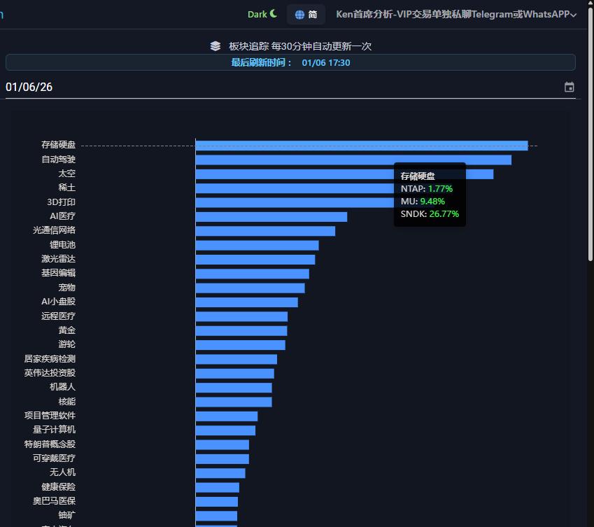开盘不到半小时,在美股大数据StockWe.com的板块追踪系统中,存储芯片板块已位居榜首。