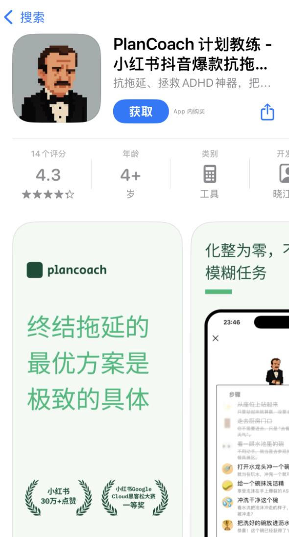 总体而言,PlanCoach的开发思路是针对ADHD患者的,开发者在小红书上经常更新思路和想法,希望能全面解决启动、执行等问题,同时避开感官过载、容易分心等问题。