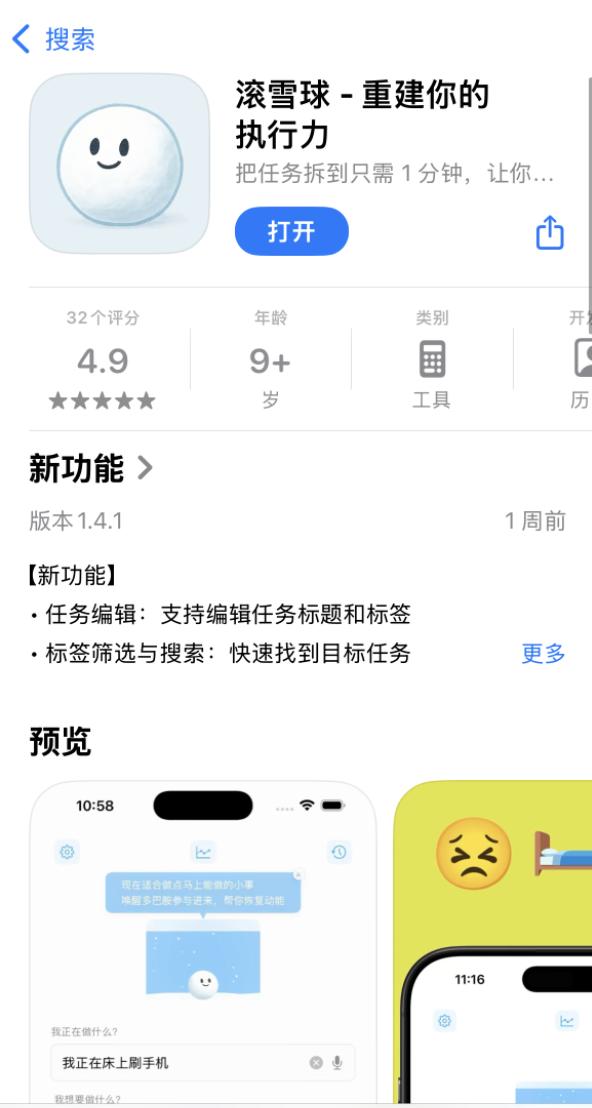 好处是有“摘果子”的感觉,走一步摘一个,反馈链条极短。但坏处是:一旦进入心流状态,可能会直接忘记点击完成——比如我使用时就常出现这种情况,成功起床洗漱后,直接忘了手机里的雪球还在滚动。