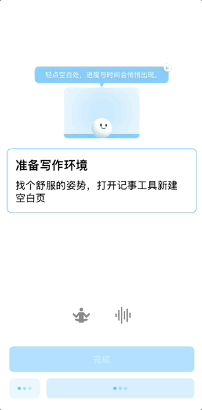 同样基于任务拆分形式,滚雪球比PlanCoach更简洁,更强调每次完成的反馈——设计上,每个具体步骤都需要点击才能进入下一步。也就是说,每次屏幕上只显示一个步骤,每个步骤还可设置倒计时,要么完成、要么跳过,才能进入下一步。