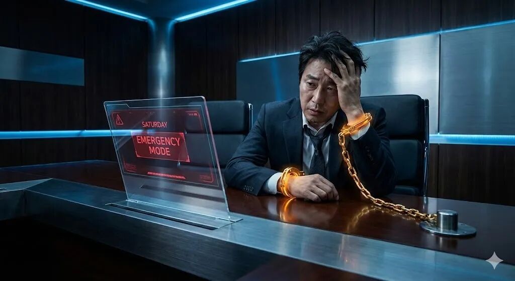 同一时刻,水原市某企业高管办公区却气氛冰冷。对这里的“金领”而言,周五下午不是结束,而是“地狱周六”的序幕。按照集团“紧急经营模式”,他们明天一早必须准时出现在会议室,直面业绩红线与董事会的问责。