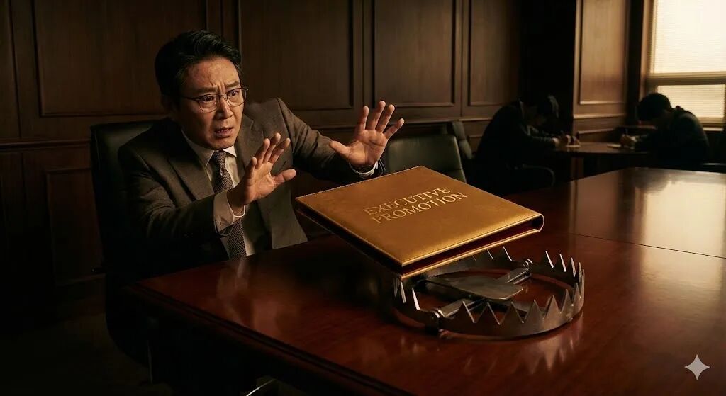 《韩国时报》曾记录这样一幕:记者祝贺一位大厂中层即将晋升时,对方惊恐摆手:“别!如果可以,我今年想尽量避免被提拔。”
