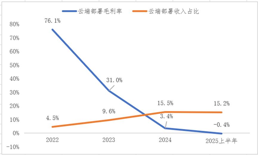 2025年上半年,包含API调用业务的“云端部署”收入仅占15%,且业务毛利率为负。同时,由于云端业务需要模型迭代和算力建设,高昂的研发成本导致公司亏损加速扩大。