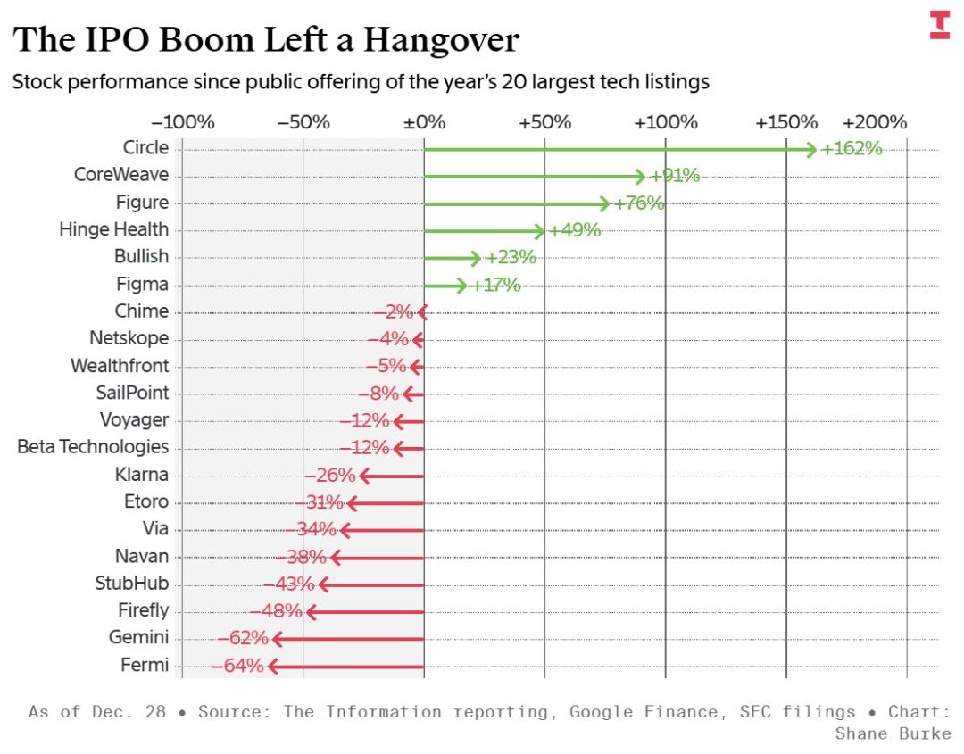 2025年,我们见证了2021年以来最繁忙的科技IPO潮,但结局却像一场空梦: