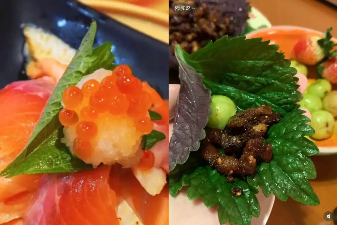 寿司郎称,紫苏叶翠绿轻薄,可作天然装饰,还能去腥解腻、增加口感。这一说法有历史与科学依据:《七发》记载紫苏配鲤鱼脍,《植物名实图考》提及其让鱼肴更鲜;现代研究发现,紫苏叶含8种风味物质,能中和刺身腥腻,其水溶液对鱼腥味的三甲胺吸附效果优于紫苏籽,契合生食海鲜的去腥需求。