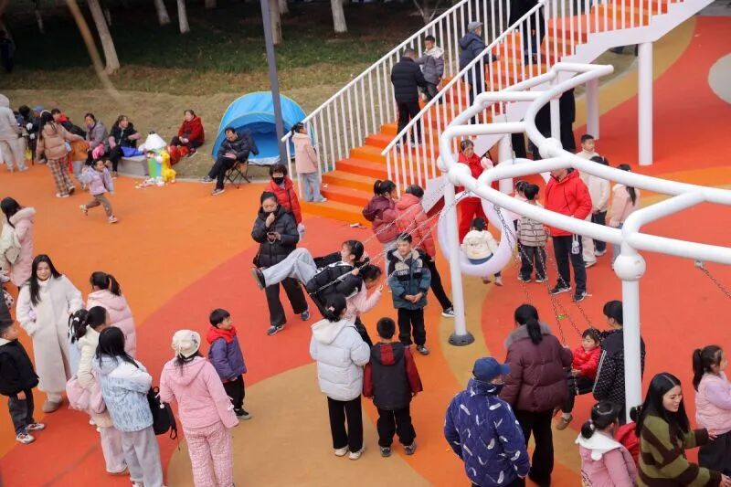 1月3日,刚刚建成开放的龙开故道儿童友好公园迎来了大批市民,许多家庭扶老携幼前来体验游玩。孩子们在大人的陪伴下,有的在户外课堂跟着老师学习古诗,有的则在江船童乐园和奇趣探险谷里畅快嬉戏。园内处处洋溢着欢声笑语,安全防护到位的攀爬网、滑梯与沙池成了孩子们的欢乐天地,不少家长也参与到游乐项目中,和孩子一起重温儿时的快乐时光。这座崭新的儿童主题公园,已然成为市民假期亲子休闲的热门打卡地,让城市里的家庭在自然氛围与趣味活动中,共同开启充满温馨的新年篇章。