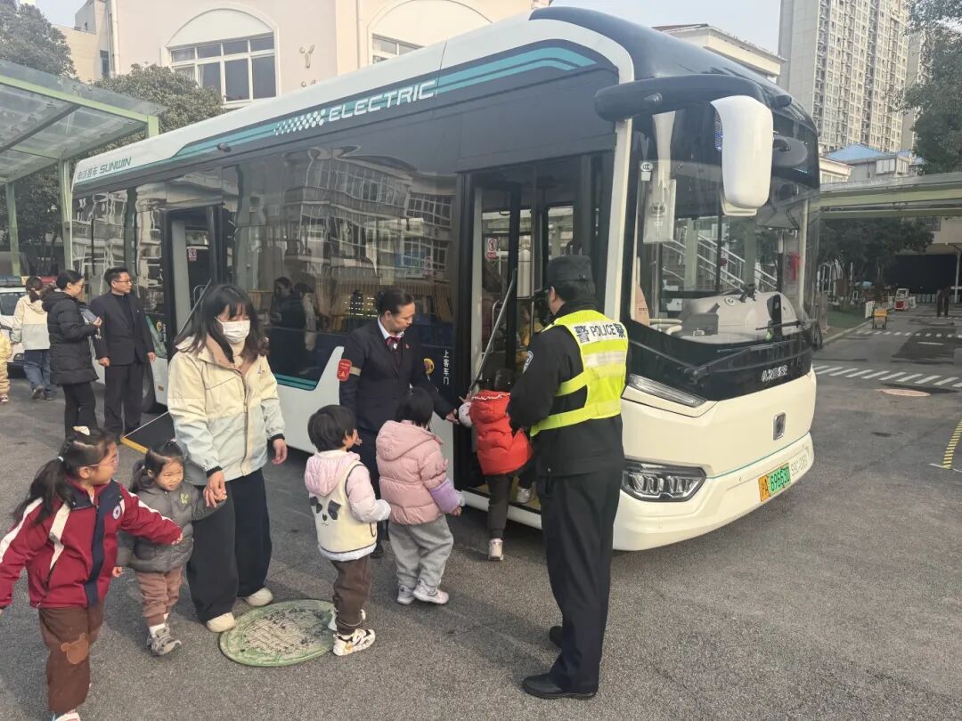 近日,巴士五公司的宝山15路公交车缓缓驶入杨行中心幼儿园,联合宝山交警机动大队开展了一场趣味十足的“安全与‘童’行,公交进校园”沉浸式交通安全体验活动。宝山30路驾驶员陈芳与交警一同,和260多名小朋友互动交流,教孩子们安全乘车知识,帮他们从小树立交通安全意识,养成文明乘车的好习惯。