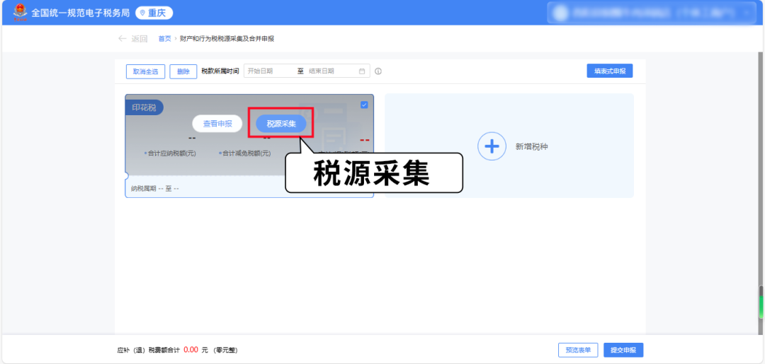 注意:已存在印花税税源信息的企业,可跳过此步骤直接申报。