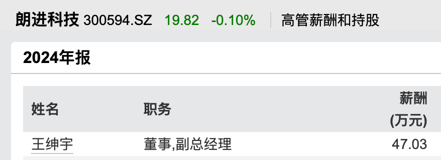 2024年度,王绅宇从朗进科技获得的税前薪酬约为47万元,同时他个人直接持有公司24.07万股股票。