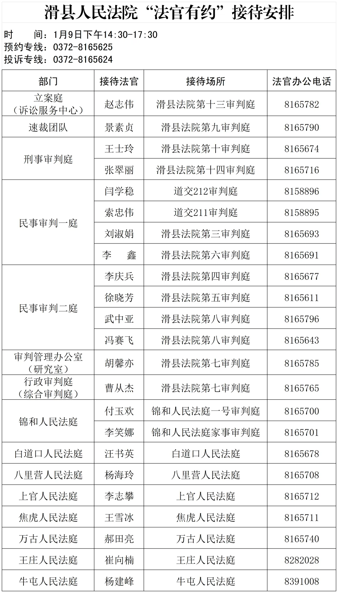 通知丨滑县人民法院“法官有约”固定接待日安排公布,速看详情→