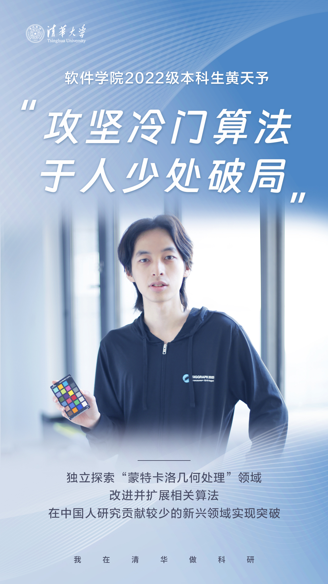 勇闯冷门摘特奖:清华学子黄天予的科研攻坚路