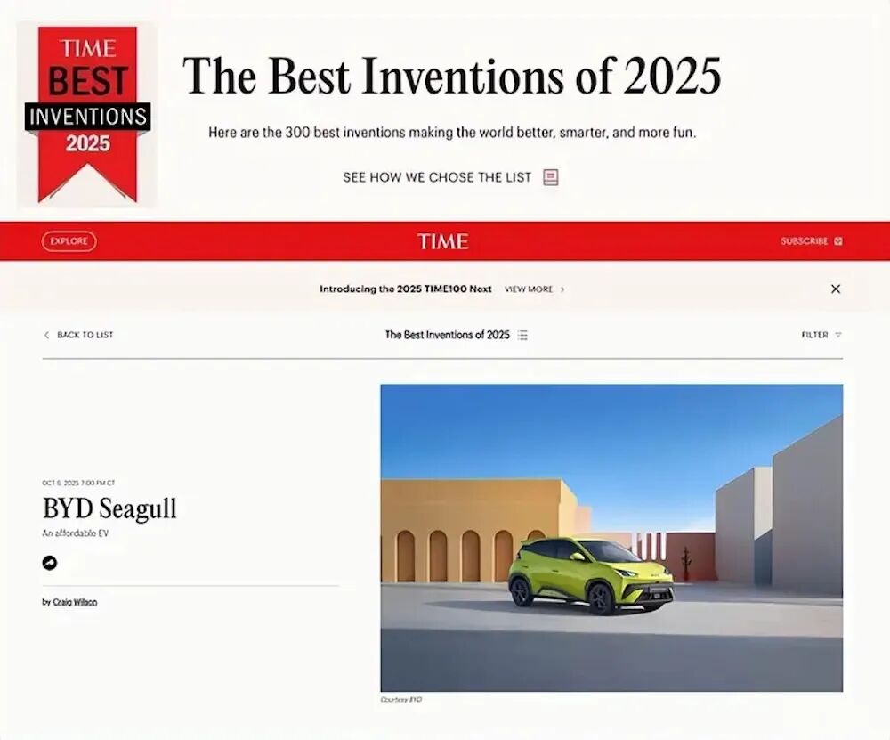 在欧洲,宋PLUS拿下德国2025年11月插混车型销冠,成为首个在德国主流细分市场登顶的中国品牌车型;海鸥入选美国《时代》杂志“年度最佳发明”。