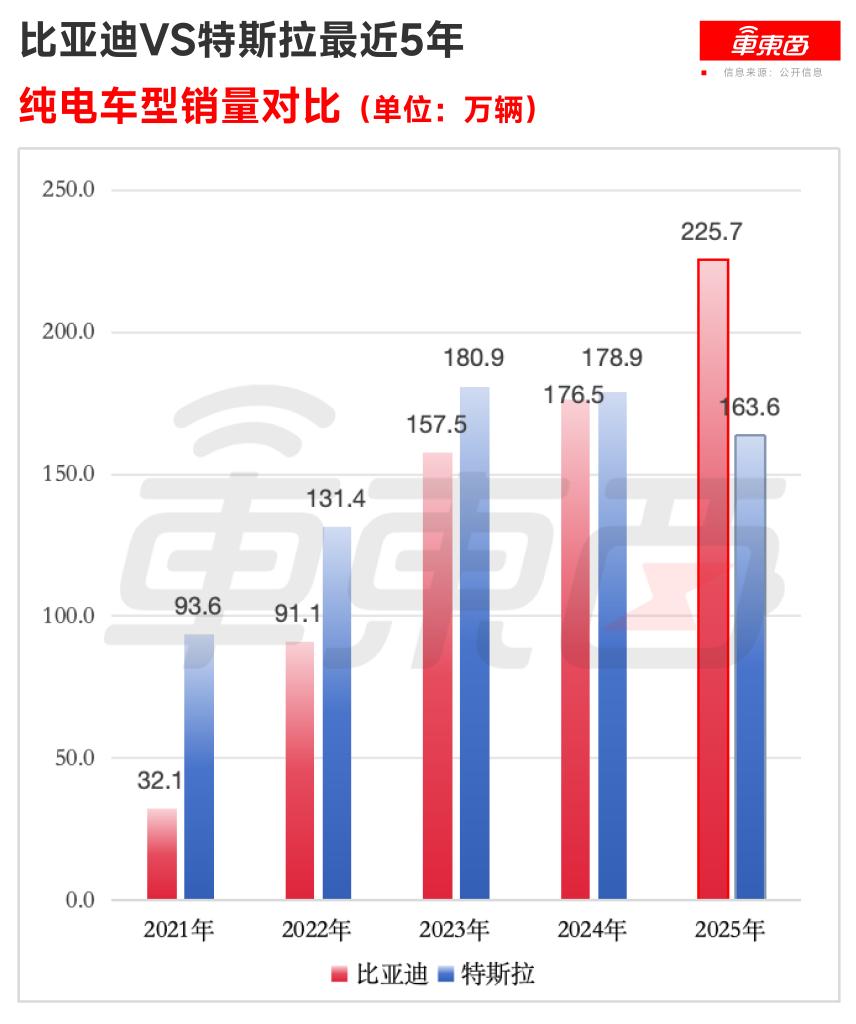 2025年比亚迪纯电销量超越特斯拉,是现代汽车史上一个具有重要意义的历史性节点。