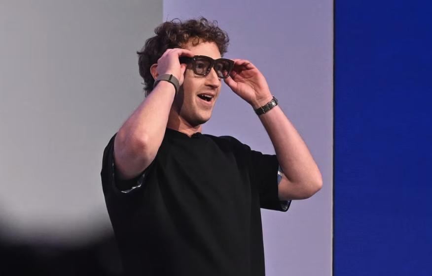 (扎克伯格在发布会上展示Ray-Ban Display及配套腕带)