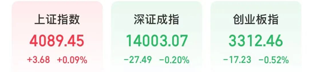 截至午间收盘,上证指数微涨0.09%,深证成指下跌0.2%,创业板指下跌0.52%。
