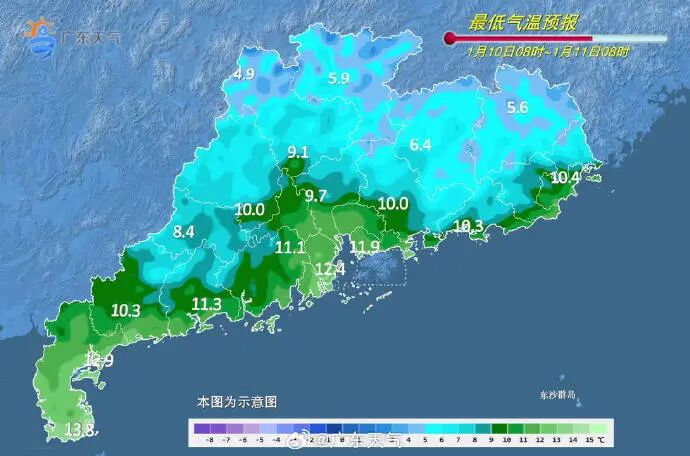 10日白天云量增多,气温继续回升,不过夜间起新一股冷空气会补充影响广东。由于引导冷空气南下的高空槽纬度偏北,这股冷空气的影响不会特别强烈,11日白天广东各地最高气温会小幅下降,早晚仍然比较寒冷。