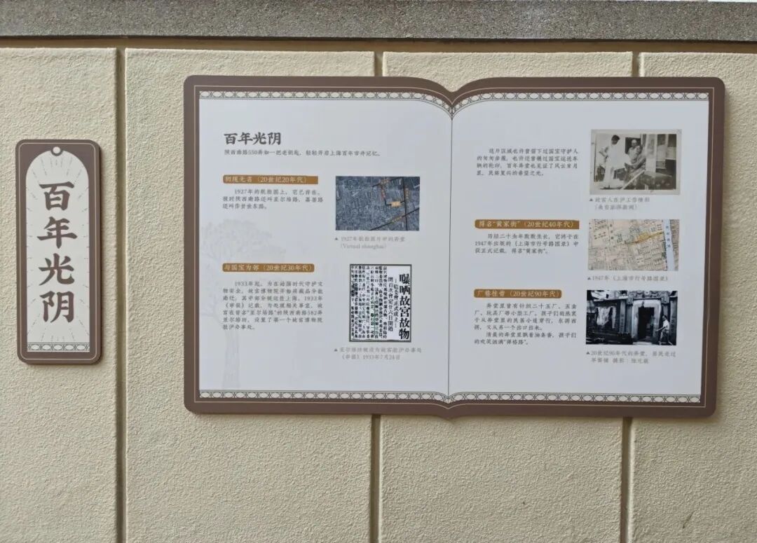如今漫步550弄,细节处的人文关怀随处可见。弄堂围墙新增怀旧主题景观:金属板上镌刻着昔日“马路菜场”的市井场景与岁月痕迹,简约设计让老弄堂的历史肌理触手可及,为风貌焕新增添深沉温情。