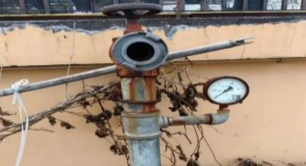 消防水池进水管被切断,消防水池无水,高位消防水箱无水。