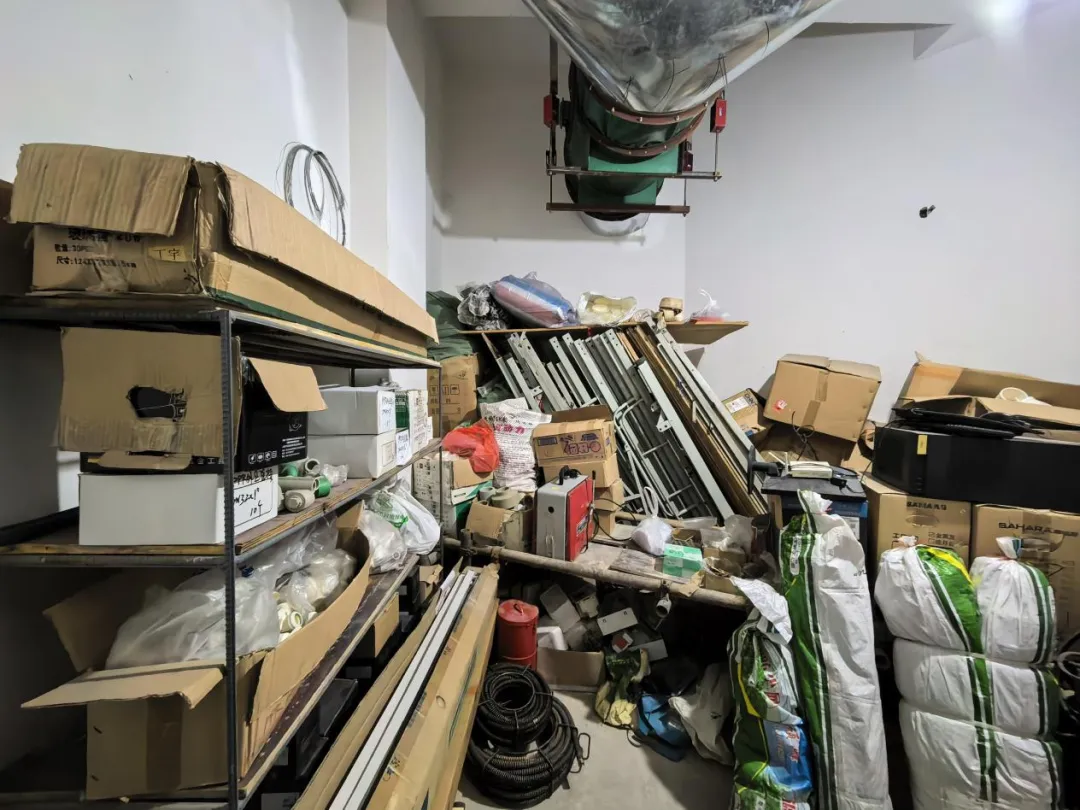 地下室排烟机房内堆放杂物。