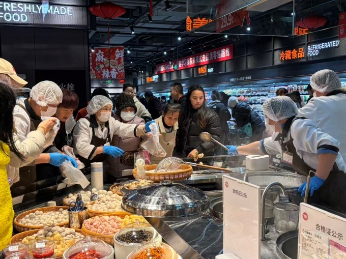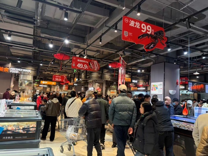 生鲜板块在保障民生需求外,大幅增加中高端与特色商品供给。水果区引入海鸥岛无花果等本地鲜果,也汇聚云南蓝莓、红颜草莓等全国地标水果;智利直采车厘子经预冷锁鲜、冷链海运,保持鲜活口感。蔬菜区推出有机、定向种植等系列,策划冬季“菌菇滋补”主题。肉禽蛋区引入有机系列、文昌椰子鸡套餐,提供网红战斧牛排代煎服务;启动“有料火锅局”活动,牛羊肉卷规格丰富,选国产及澳洲原切原料。水产区主推帝王蟹等海鲜,提供清洗、烹饪加工服务。
