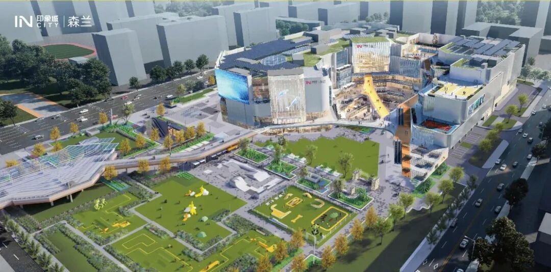 森兰印象城总体量约18万㎡,以森兰区域“森系”生态为灵感,建筑设计为“森兰山谷”——外切为山、内退成谷、层层攀升,通过盒子、退台、步道、联桥构建特色空间。它创新采用“购物中心+体育中心+社区中心”融合形态,除商业外,还包含社区服务中心、市民体育中心、室外体育公园,探索社区生活艺术,培育社群黏性。