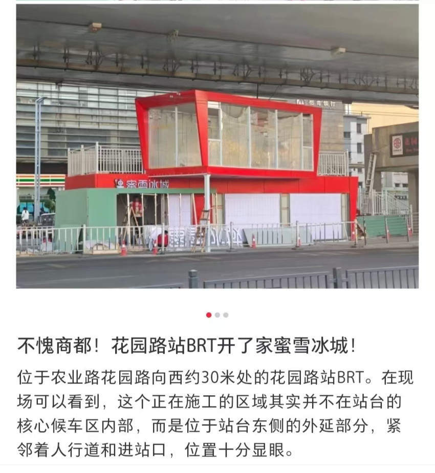 以蜜雪冰城为例,正观新闻去年12月初报道称,蜜雪冰城不仅在郑州关虎屯公交站开了新店,还计划沿城市主干道BRT站台再布局10家门店,精准覆盖沿线的庞大客流。