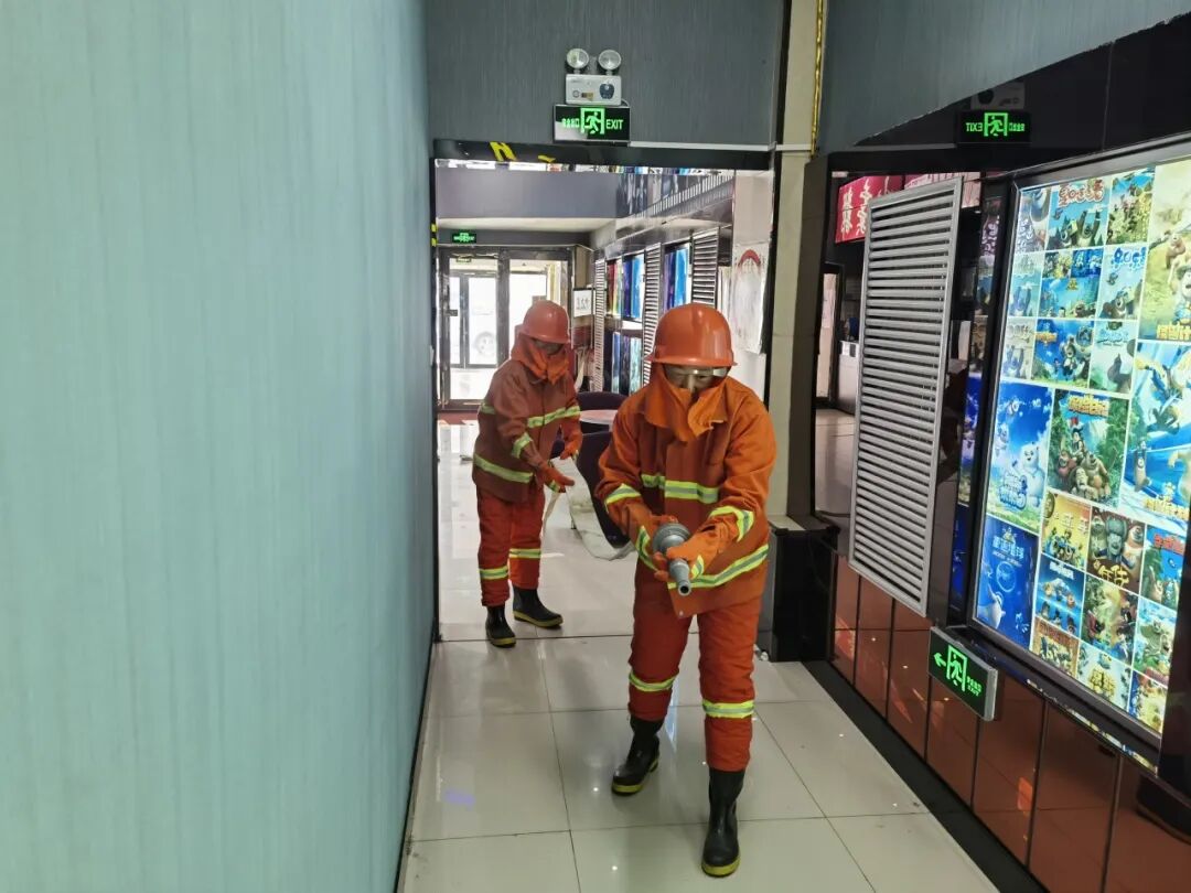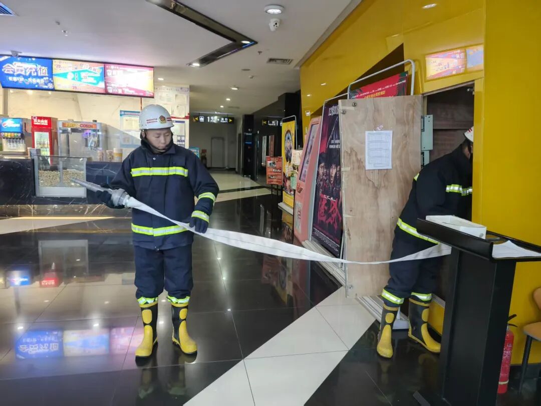 此外,检查人员还在现场组织影院微型消防站开展了实战实装拉动演练,以此检验影院应对突发火情的应急处置能力。截至目前,全市范围内共检查各类影院17家,督促整改各类消防安全隐患问题38处,拉动微型消防站17个并同步开展消防安全培训,培训受众人数达192人。