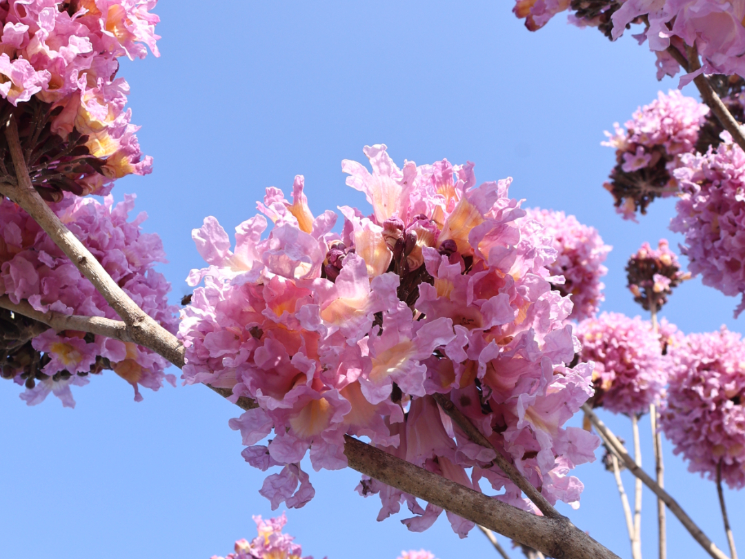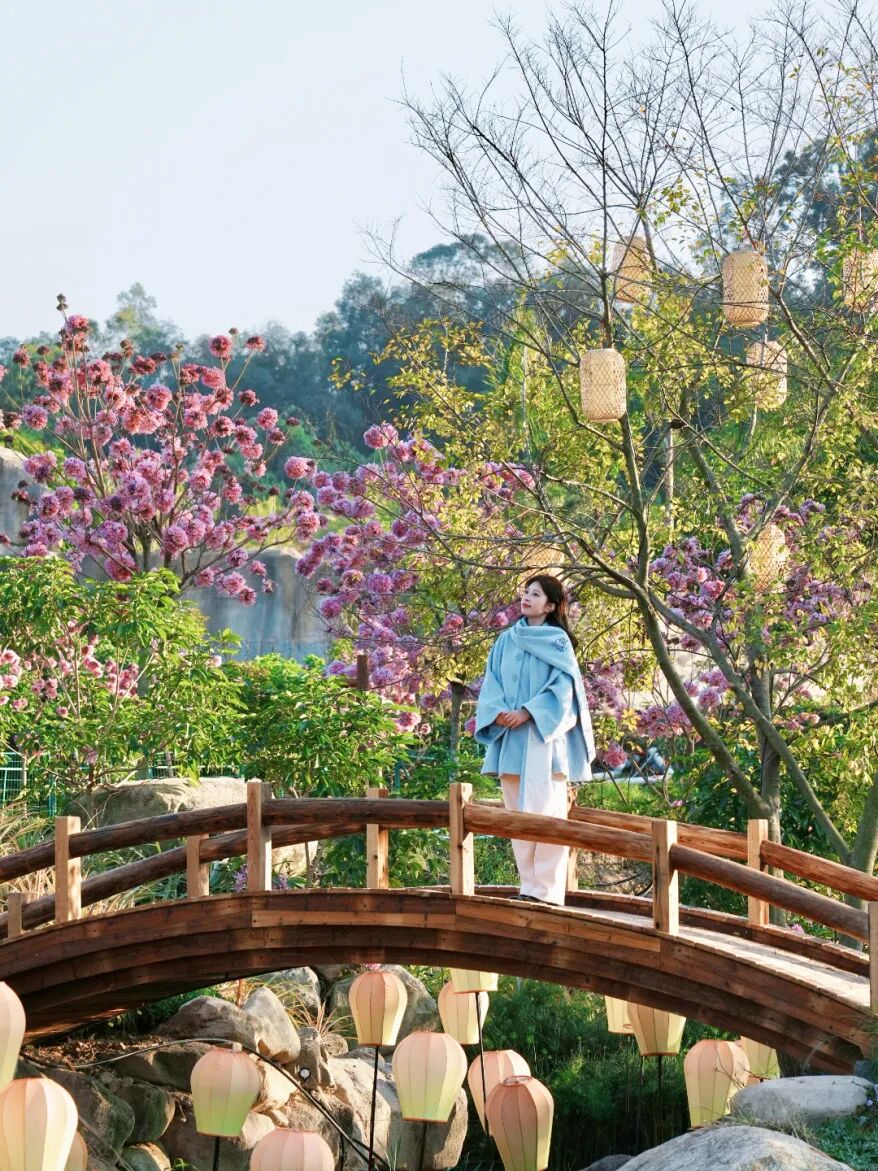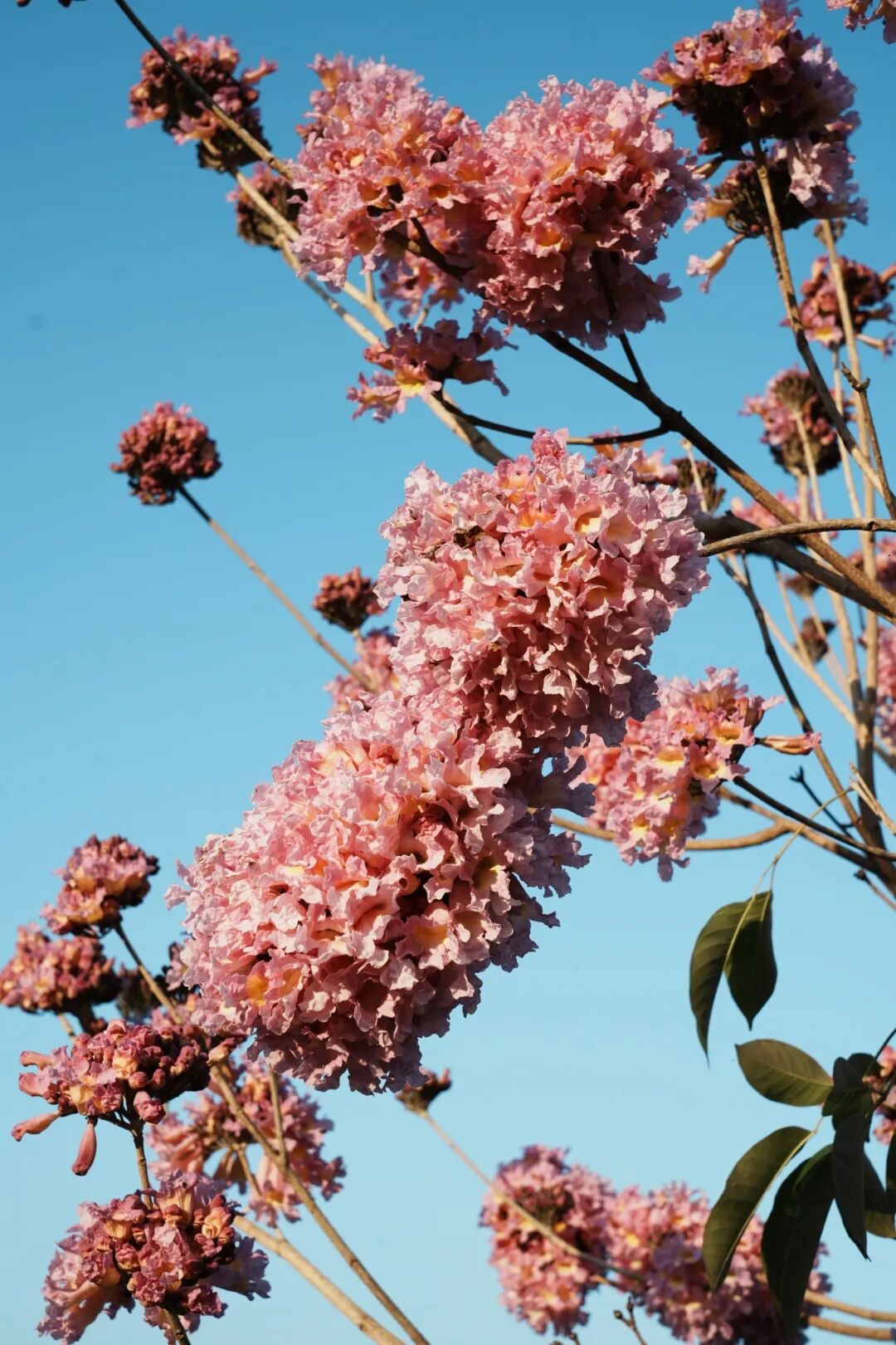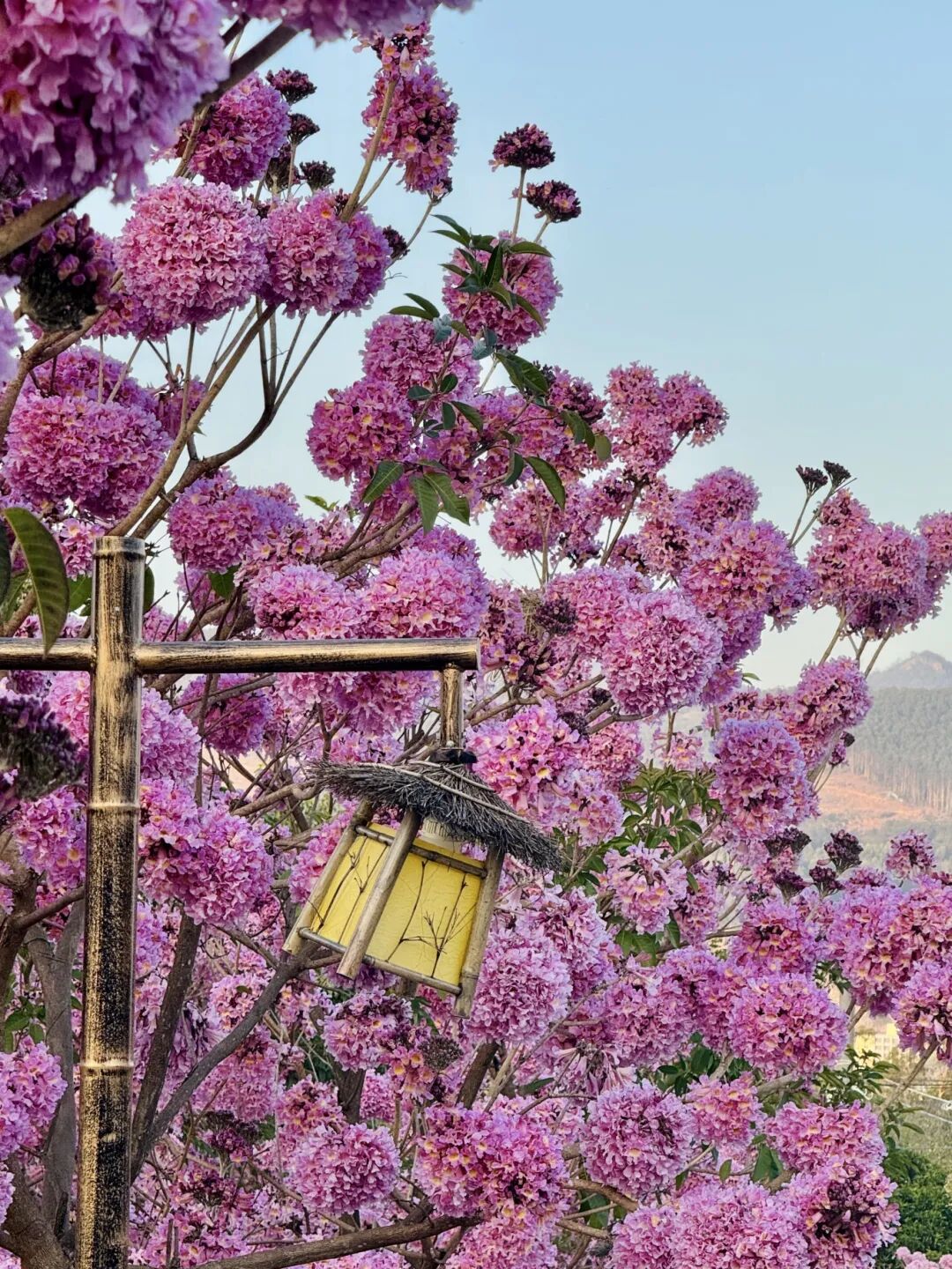 漫步在风铃小径,数不清的风铃花随风轻摇,宛如云霞洒落人间,织就一场不愿醒来的粉红幻梦。