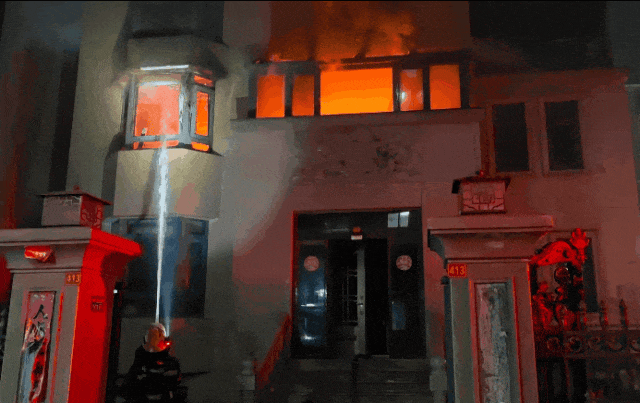 近日,江苏泰州海陵区的一栋三层民房在深夜突然起火,熊熊烈焰夹杂着滚滚黑烟从房间窗口喷涌而出。
