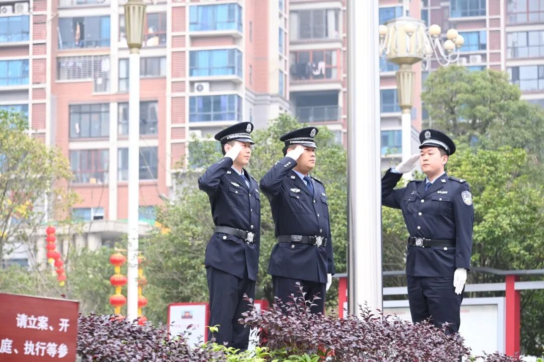 法院广场上,他们身姿挺拔、神情庄重。以忠诚作笔,以担当为墨,将守护公平正义的誓言,铭刻在每一次升旗的庄严时刻里。