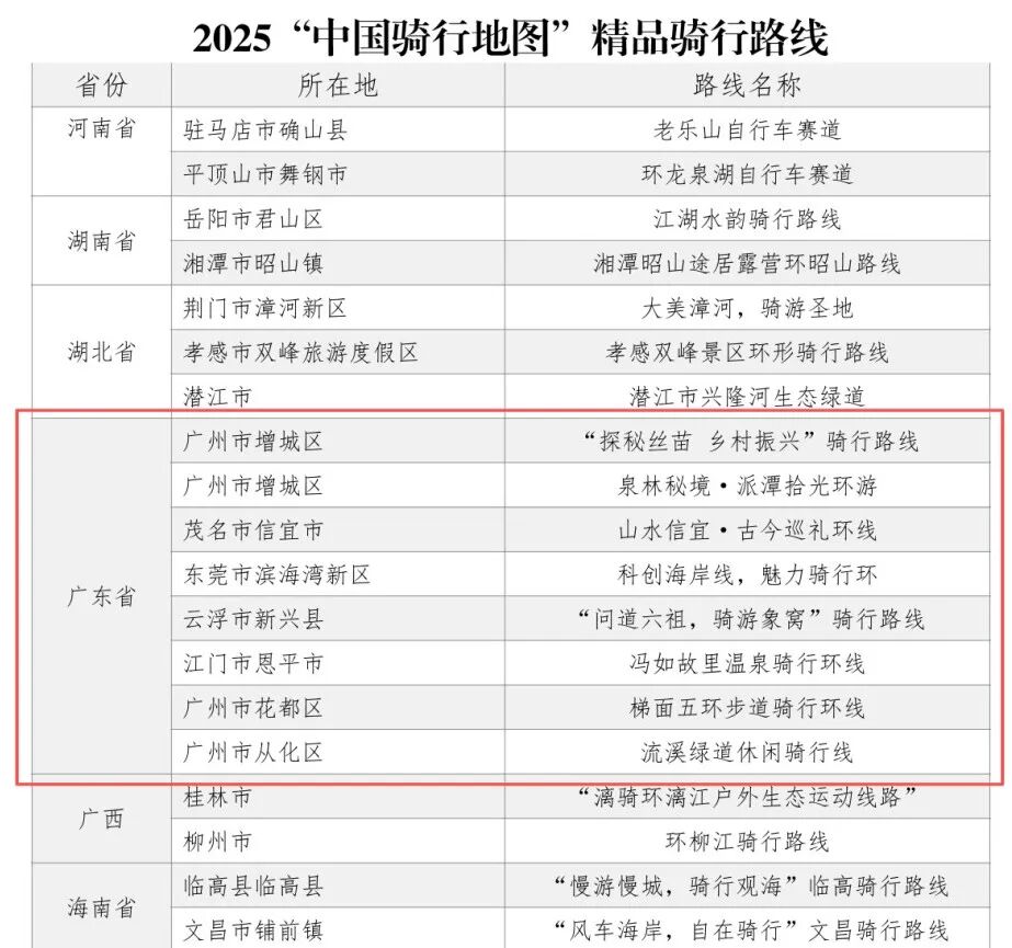 日前,中国自行车运动协会公布了2025“中国骑行地图”百条精品骑行路线,广东共有8条路线成功入选。其中,茂名信宜市的“山水信宜·古今巡礼环线”赫然在列,成为展现广东“体育+旅游”融合发展魅力的重要代表。