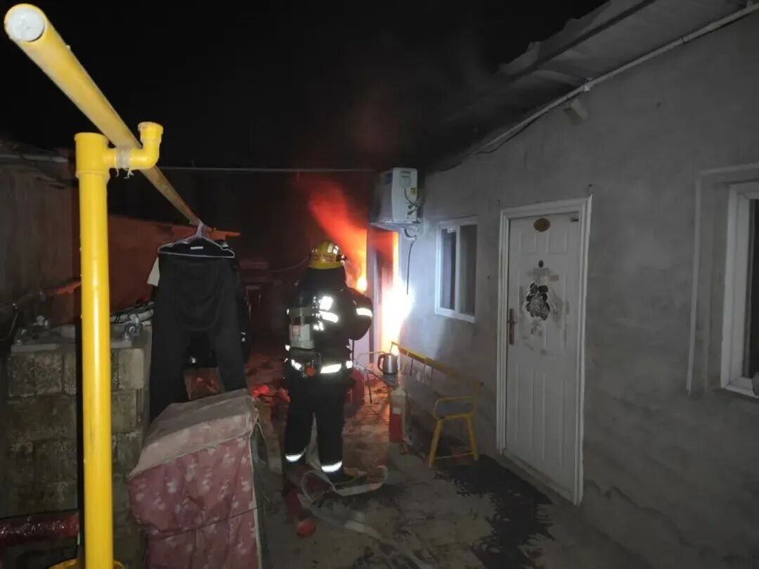 1月1日晚,大兴区一间平房突发火灾,消防救援人员接警后迅速赶往现场展开扑救,火灾导致平房内卧室的床铺和衣物被引燃。