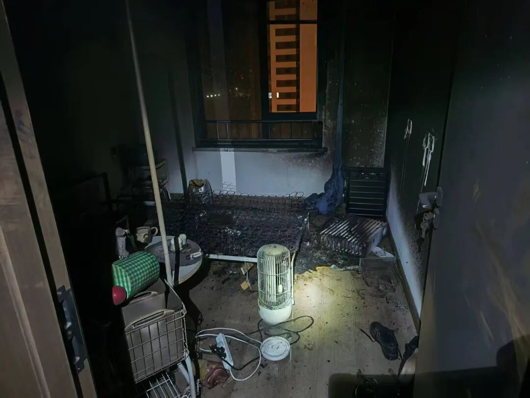 据居民任女士回忆,她在睡梦中被惊醒,睁眼就看到床尾有火光,仔细一看,被子已经被引燃,明火还在向上蹿,同时伴有大量浓烟。随后,任女士用湿毛巾捂住口鼻,切断电源,用盆接自来水尝试灭火。