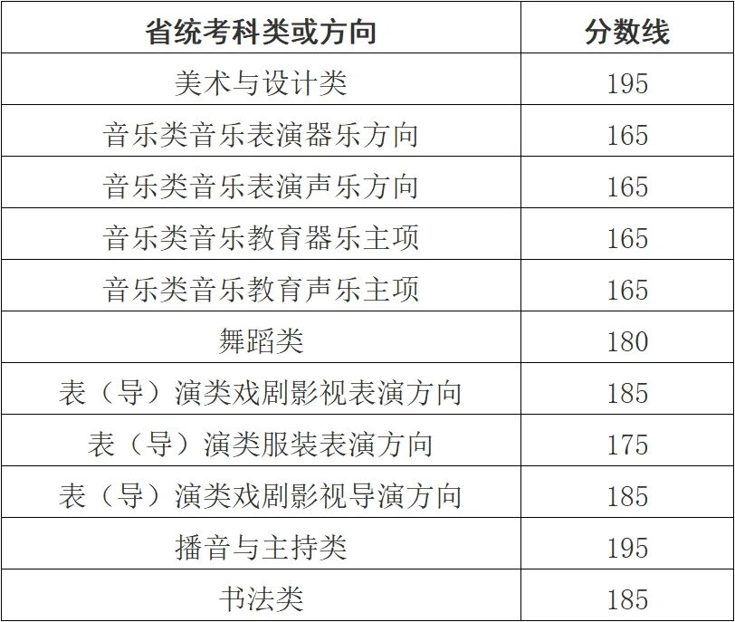 2026年浙江省普通高校招生艺术类专业省统考合格分数线详情如下:
