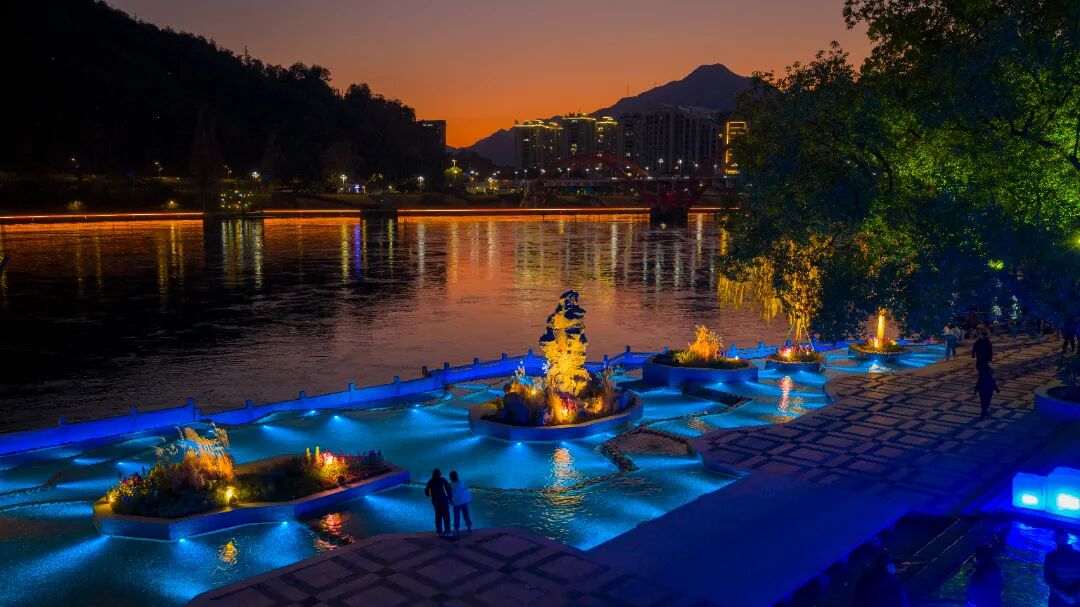 亲水岸线被灯光勾勒出温柔轮廓,