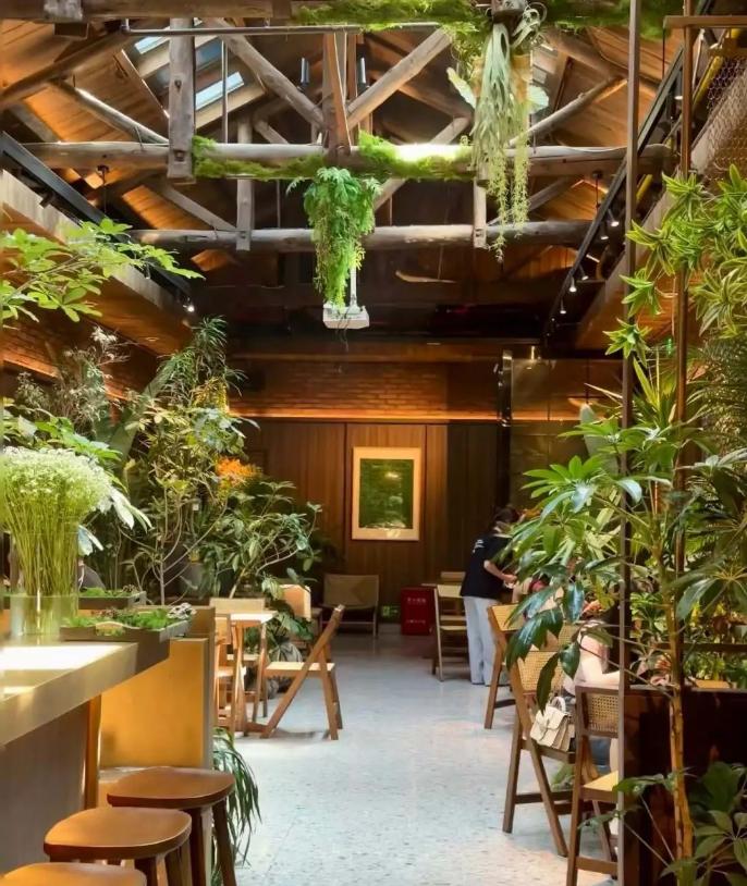 都市人内心向往自然,由枯树枝、假山石、绿植墙打造的山野火锅环境,仿佛成了大家亲近自然的临时替代选择。