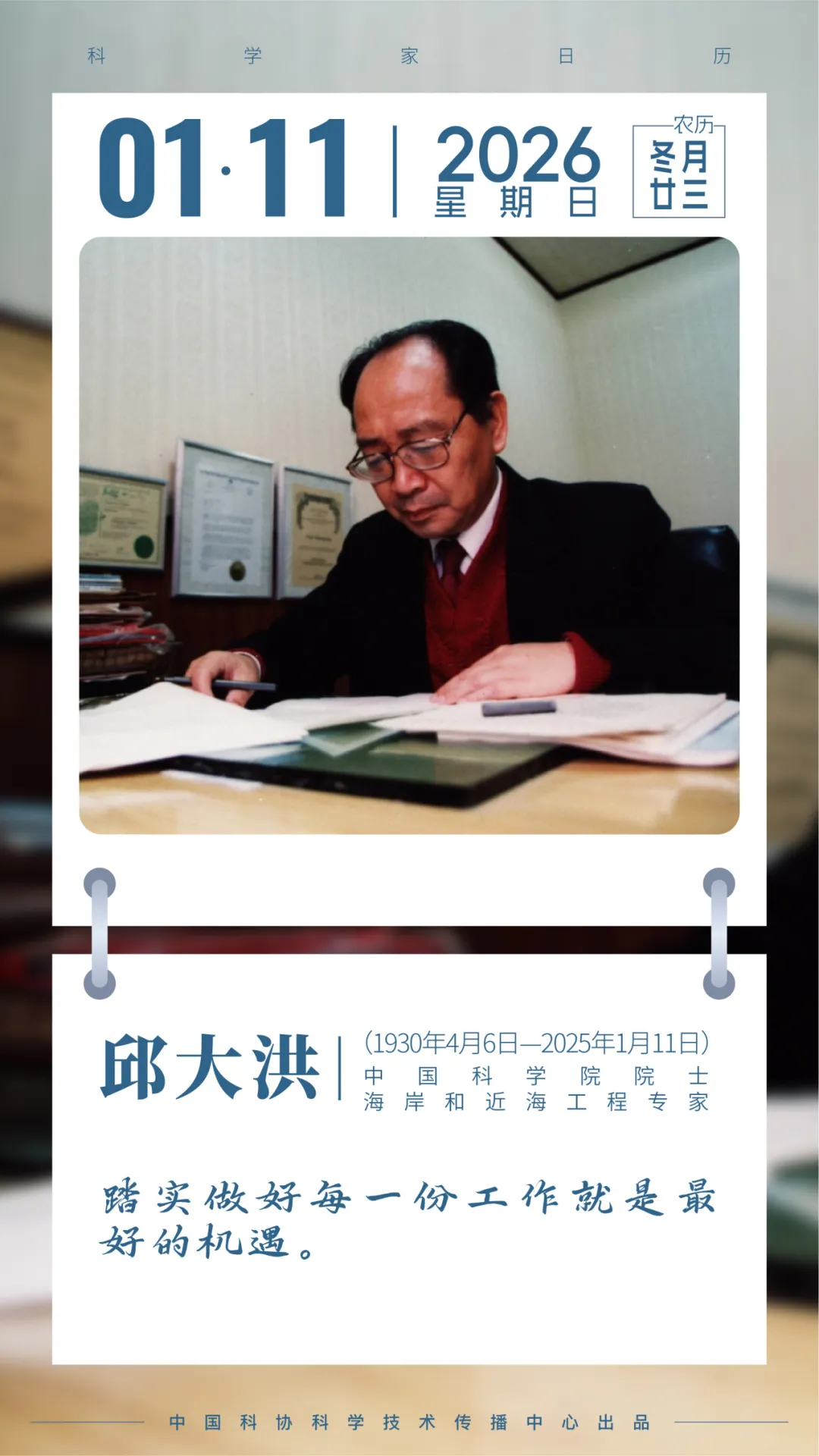 于点滴故事中,领略科学家精神的熠熠光辉。我们特别开设【科学家日历】专栏,讲述科学家的故事,打造展示科学家群像风采的“人物志”、讲述科技事业发展历程的“时光笺”、弘扬科学家精神内涵的“文化集”。