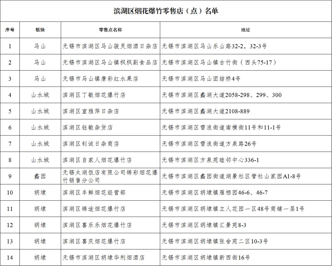 原标题:《滨湖区烟花爆竹(零售)经营点最新名单!》