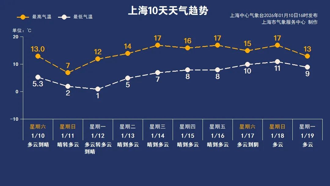 下周上海将以晴或多云天气为主。受冷空气与辐射降温的共同影响,下周一早晨市区最低气温仅1℃,郊区气温在零下5℃至零下3℃,会出现冰冻甚至严重冰冻情况,不过白天最高气温可升至12℃。