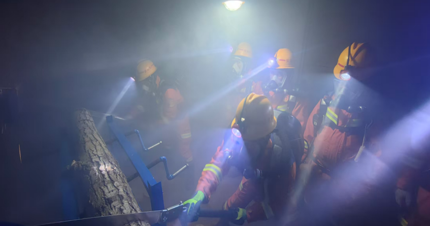 高温浓烟训练借助青海队新建的巷道实训演练系统实施,该系统可精准模拟井下水灾、火灾、瓦斯爆炸、顶板垮落等典型事故场景。训练严格依据《矿山救护队标准化考核规范》开展,参训人员佩戴正压氧气呼吸器,在40℃的高温浓烟环境中,于规定时限内完成锯木段、拉检力器等指定考核科目。