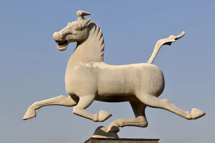 铜奔马雕塑傲然矗立
