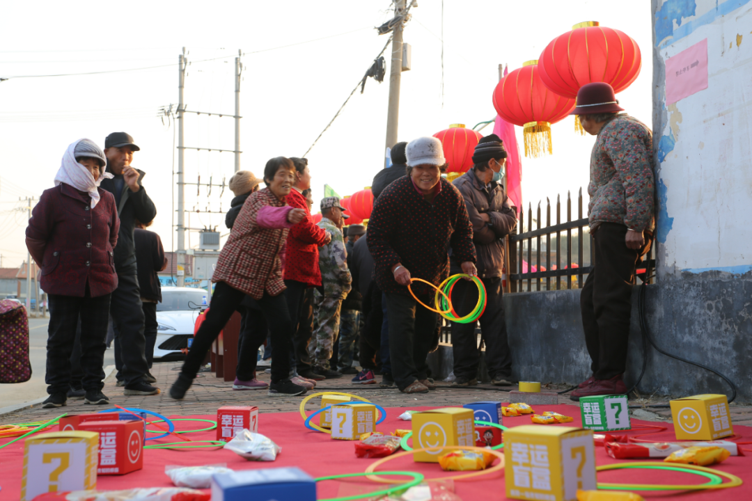 年味愈发浓郁!另一边,志愿者们精心准备了套圈、投壶等互动游戏,村委大院里满是乡亲们的欢笑声,热闹非凡。