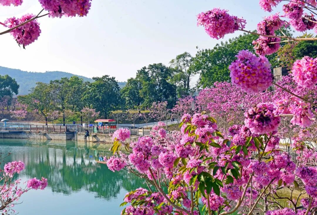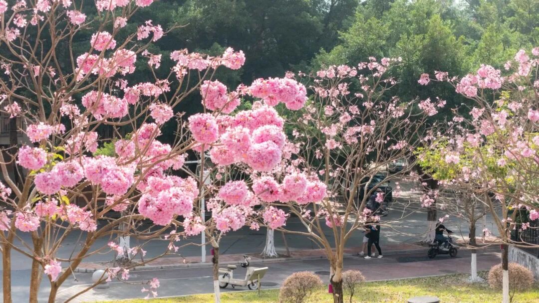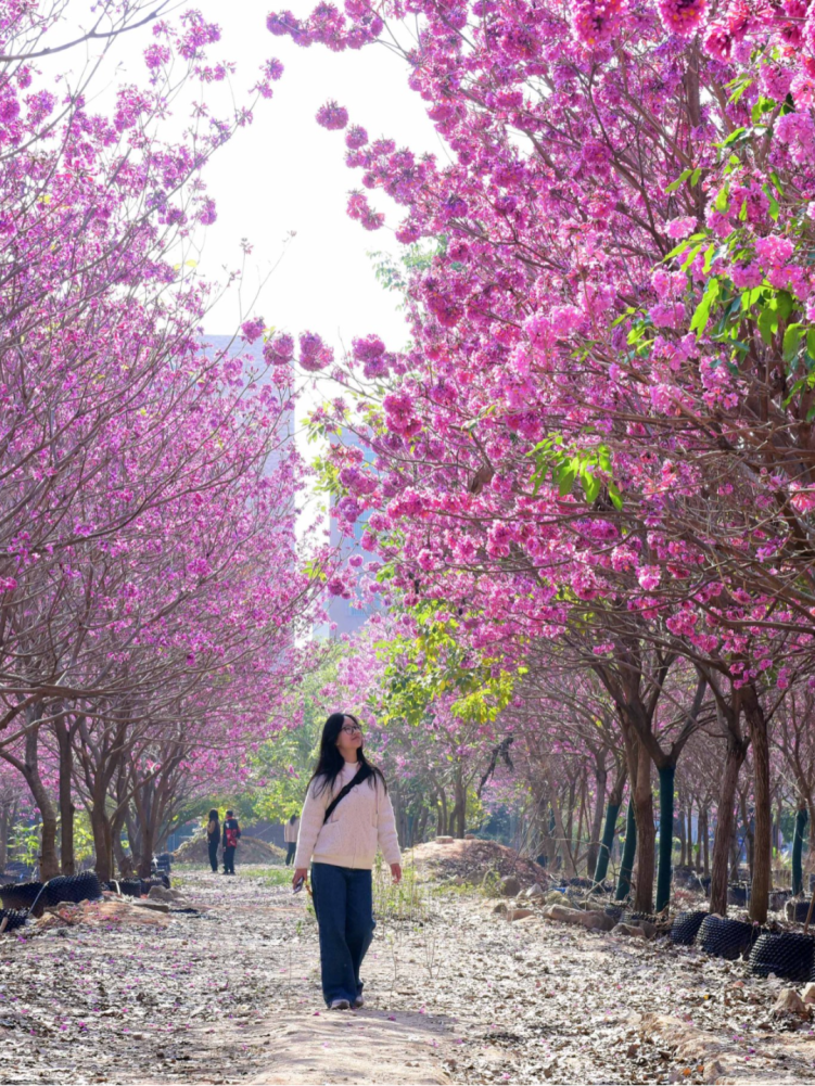 花都的不少公园、广场、景区也能赏紫花风铃木