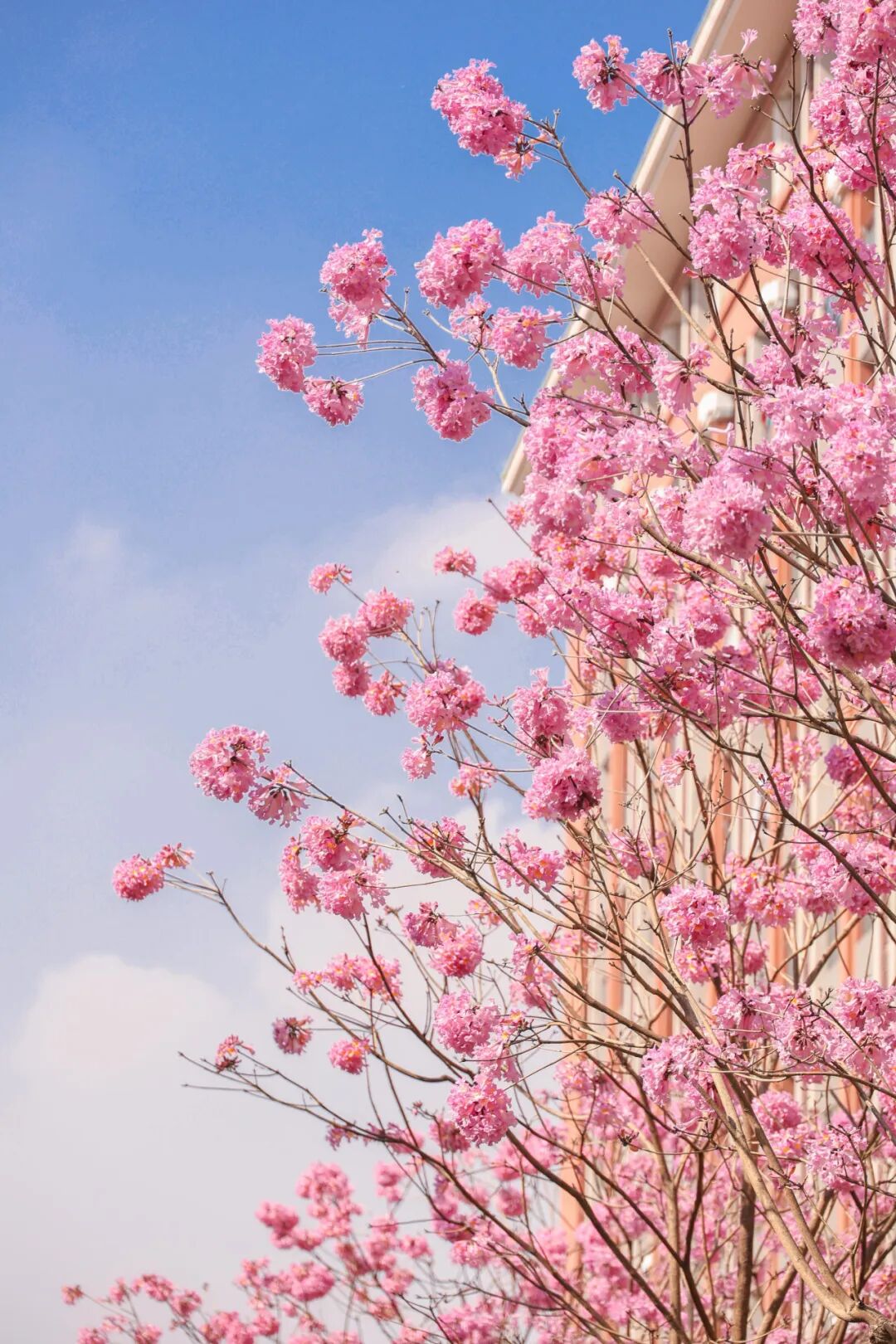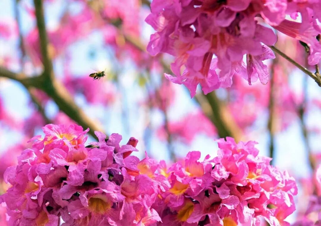 让紫花风铃木与江面、船只同框