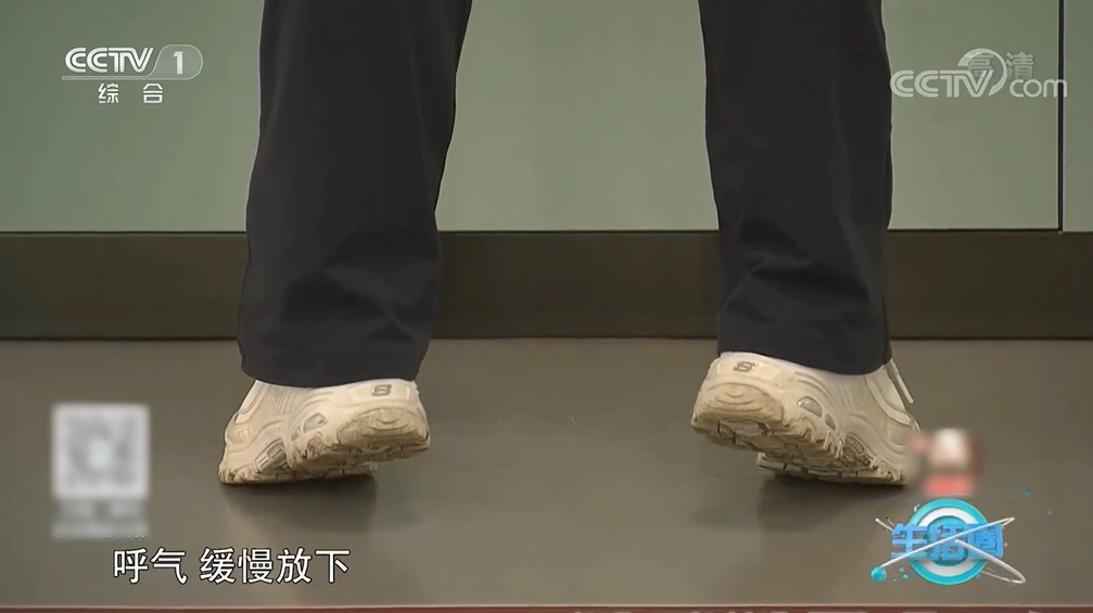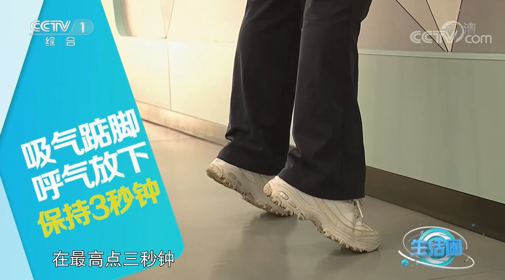 向下颠足:身体放松,轻轻咬牙,先缓缓下落一半,再让足跟轻震地面。
