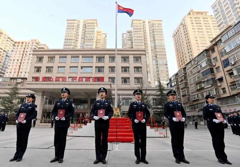 当天早上8时30分,升警旗仪式正式启动。仪仗队员步伐整齐,护卫着警旗正步行至升旗台。在激昂的中国人民警察警歌伴奏下,鲜艳的警旗迎着朝阳缓缓升起,在风中飘扬。参与仪式的民警们昂首挺立,精神饱满,向警旗庄重敬礼。仪式期间,大家重温了人民警察誓词,还为新警代表颁发了授衔命令证书。