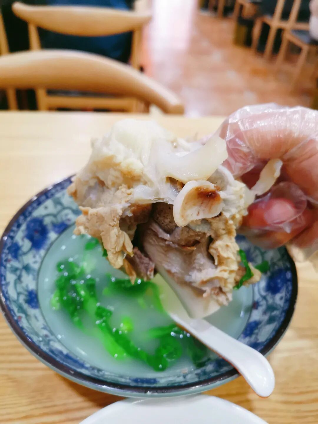 咸肉菜饭搭配大骨汤堪称绝配,吸骨髓、啃贴骨肉,再就着猪油饭,满足感爆棚。有人还爱配面筋,淋上甜鲜汤汁,不知不觉就能吃下一大碗。
